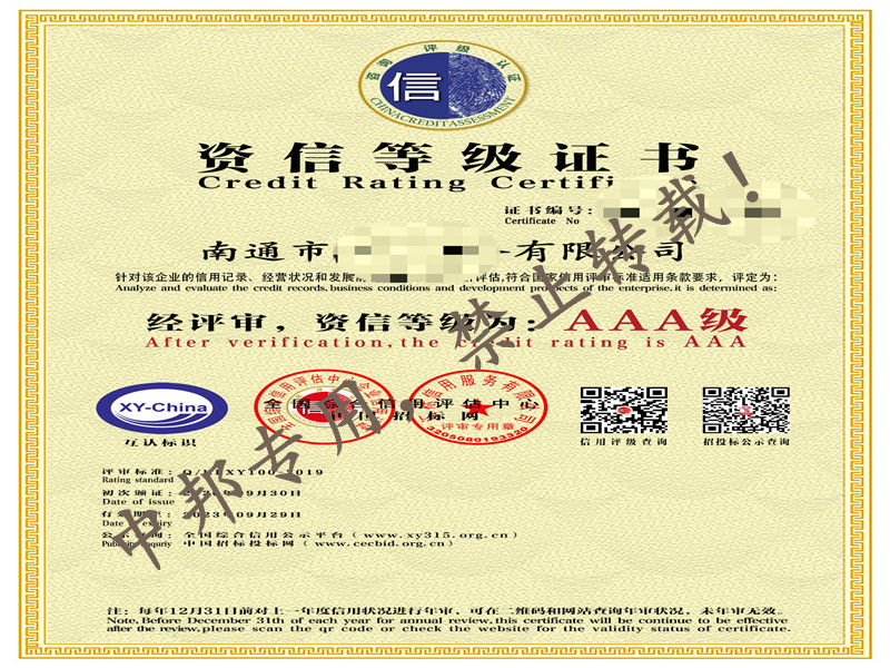 恭贺南通XX印务有限公司2020年10月顺利通过AAA信用等级认证!